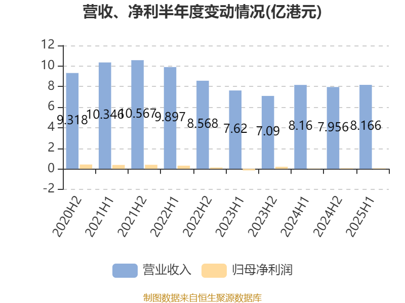 中证智能财讯万裕科技(00894)9月29日披露2025年中期报告。报告期内,公司实现营业收入8.17亿港元,同比增长0.08%;归母净利润440.5万港元,同比增长59.83%;据报告显示,万裕科技基本每股收益为0.0093港元,平均净资产收益率为0.3%。