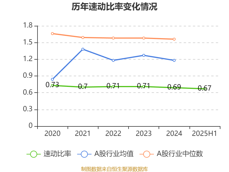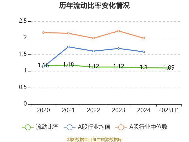 2025年上半年,公司流动比率为1.09,速动比率为0.67。